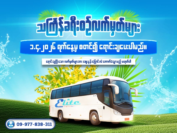 Elite Express အဆင့်မြင့်ခရီးသည်ပို့ဆောင်ရေးလုပ်ငန်းကို ၂၀၁၁ ခုနှစ်တွင် စတင်တည်ထောင်ခဲ့ရာ ယခုဆိုလျှင် (၁၄) နှစ်တိုင်ပြည့်ခဲ့ပြီဖြစ်ပါသည်။ ပြည်တွင်းရှိ ခရီးသွားမိတ်ဆွေ မိဘပြည်သူများနှင့် လုပ်ငန်းရှင်မိတ်ဖက်များ၏ သွားရေးလာရေး ၊ ပို့ဆောင်ဆက်သွယ်ရေးများ အဆင်ပြေလွယ်ကူ ချောမွေ့စေရန်အတွက် မြန်မာပြည် နေရာအနှံ့အပြားရှိ မြို့ပေါင်း (၂၅) မြို့ သို့ နိုင်ငံတကာအဆင့်မှီ Air Con Bus များ SCANIA နှင့် SC NEUSTAR အမျိုးအစား ခရီးသွားယာဉ်အသစ်များဖြင့် ခရီးစဉ်များအား နေ့စဉ်ပြေးဆွဲ၍ ဝန်ဆောင်မှုများပေးလျက်ရှိပါသည်။ Elite Express ဝန်ဆောင်မှုများအား အချိန်နှင့်တပြေးညီ ဆက်သွယ်ရရှိနိုင်ရန်အတွက် အမြို့မြို့အနယ်နယ်ရှိ မြို့ကြီးများတွင် ပင်မဂိတ်များ ဖွင့်လှစ်ပေးထားရုံသာမက လက်မှတ်အရောင်းကိုယ်စားလှယ်ဆိုင်များကိုလည်း ချိတ်ဆက်ဆောင်ရွက် ပေးလျက်ရှိပါသည်။ နည်းပညာဝန်ဆောင်မှုသစ်တစ်ခုအနေဖြင့် Online Payment များဖြင့် ခရီးစဉ်လက်မှတ် ဝယ်ယူနိုင်သော Customer Mobile Application ကိုလည်းထုတ်လုပ်၍  လုံခြုံစိတ်ချရမှုအပြည့်အဝဖြစ်သော  ဝန်ဆောင်မှုများအား တိုးမြှင့်ပေးအပ်လျက်ရှိသည့်အပြင်  (၁၂) နှစ်တာကာလတိုင် ပိုမိုကောင်းမွန်အောင် စဉ်ဆက်မပြတ် ကြိုးစားခဲ့ရာ အဝေးပြေးခရီးသွားလုပ်ငန်းဈေးကွက်တွင် Customer များ၏ ယုံကြည်အားပေးမှုအားများစွာရှိထားသော အဆင့်မြင့်ယာဉ်လိုင်းတစ်ခုအဖြစ်လည်းရှိနေခဲ့ပါသည်။ ယခုလက်ရှိတွင် ယာဉ်အစီးရေပေါင်း SCANIA (၁၀၈) စီး ၊ SC NEUSTAR (၂၂) စီးတို့ဖြင့် နေ့စဉ်ပြေးဆွဲနေပြီး ခရီးသည်ပေါင်း (၂၀၀၀) ခန့် တို့၏ စီးပွားရေး ၊လူမှုရေး ၊ လမ်းပန်းဆက်သွယ်ရေး နှင့် ကုန်စည်ပို့ဆောင်ရေး အခက်အခဲများအတွက် ကူညီဆောင်ရွက်ပေးလျက်ရှိရာ ပြည်တွင်းအဆင့်မြင့်ခရီးသည်ပို့ဆောင်ရေး လုပ်ငန်းကြီးအဖြစ် ယနေ့ထိတိုင်ဂုဏ်ယူစွာရပ်တည်နေနိုင်အောင် ယုံကြည်ပေးပါသော ခရီးသွားဧည့်သည် တော်လူကြီးမင်းများ နှင့် အကောင်းမွန်ဆုံး ဝန်ဆောင်မှုပေးနေသော ဝန်ထမ်းများကို အမြဲကျေးဇူးတင်လျက်ရှိပါသည်။