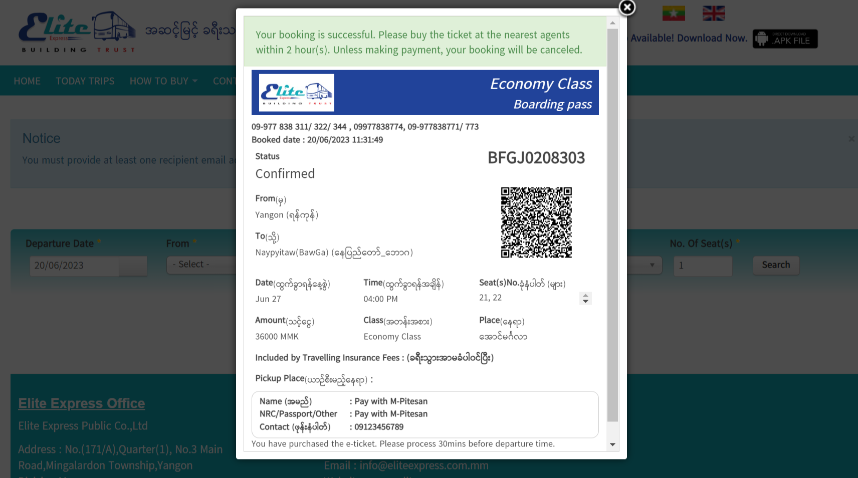 9. Finally by getting your confirmed ticket, purchasing complete.